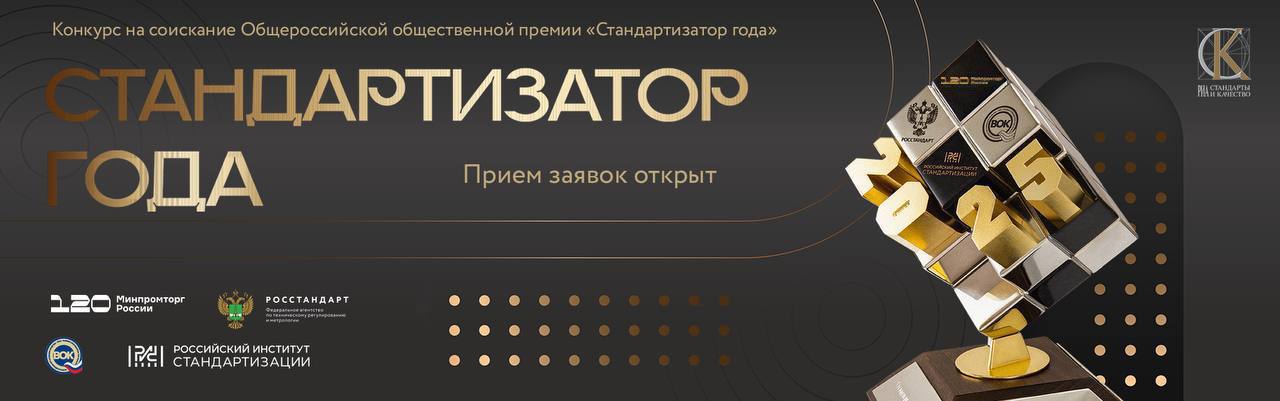 Стартовал прием заявок седьмого ежегодного конкурса на соискание Общероссийской общественной премии «Стандартизатор года». Организаторами конкурса выступают Всероссийская организация качества и ФГБУ «Российский институт стандартизации» при поддержке Минпромторга России и Росстандарта. Генеральным информационным партнером выступает РИА «Стандарты и качество».