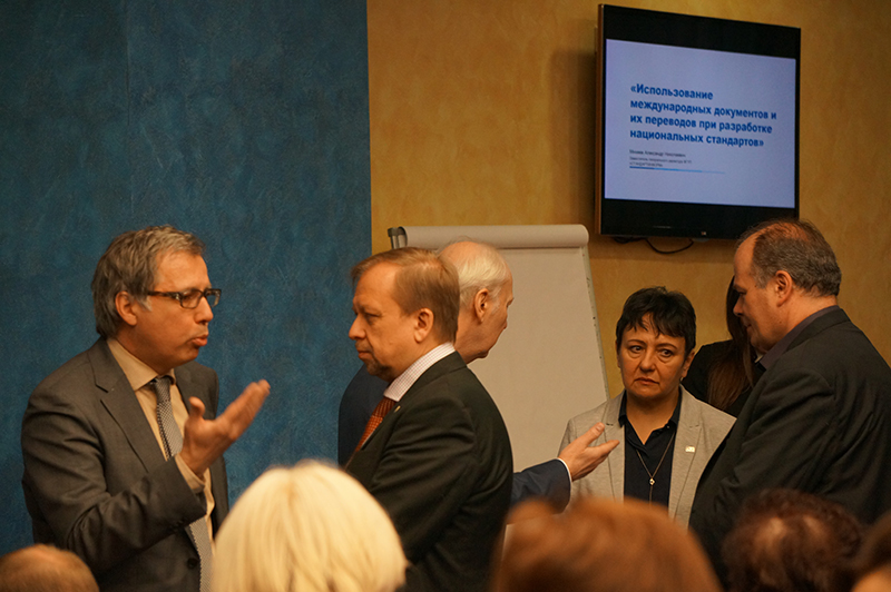 ФГУП «Стандартинформ» представил сообщения, ключевые по теме встречи: заместитель генерального директора А.Н. Михеев рассказал об использовании международных документов по стандартизации и их переводов при разработке национальных стандартов, заместитель генерального директора А.А. Барков проинформировал о проведении нормоконтроля проектов стандартов.